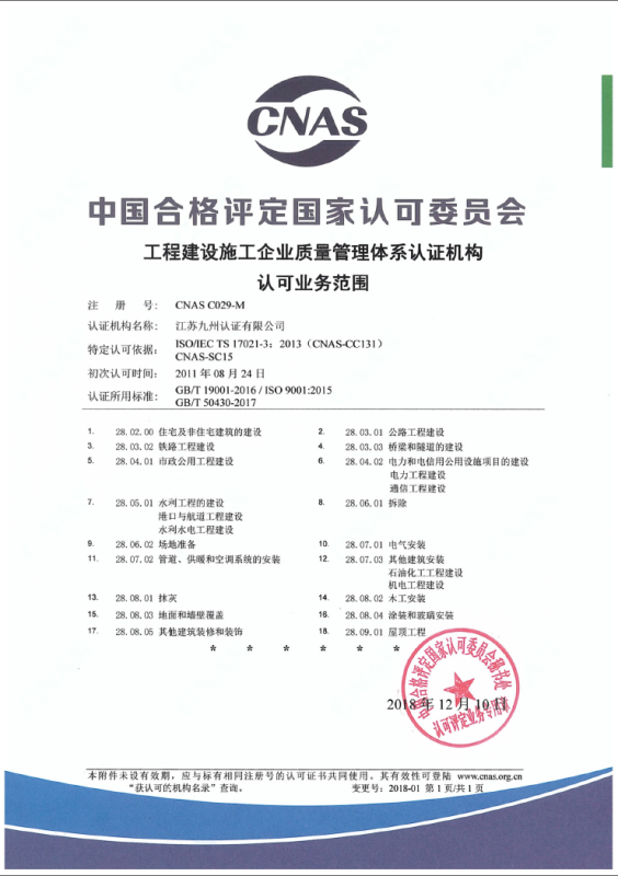 • 工程建設施工企業(yè)管理體系認可業(yè)務范圍-中文