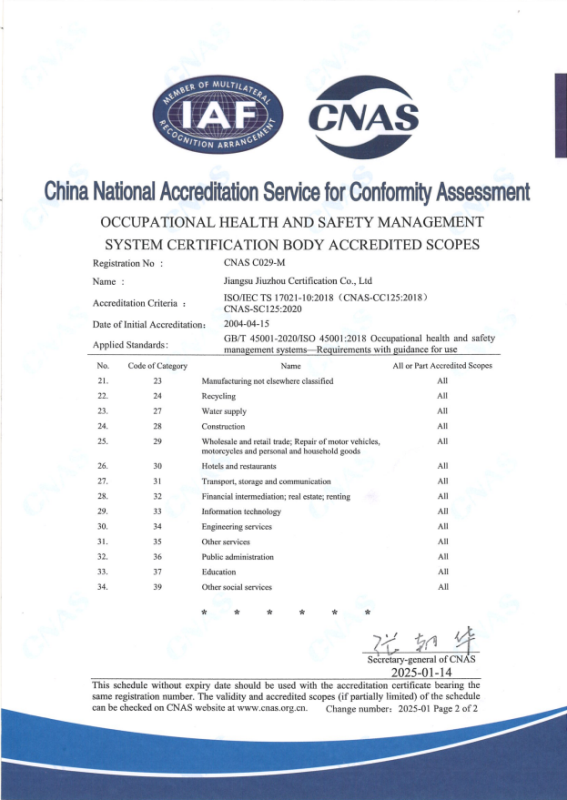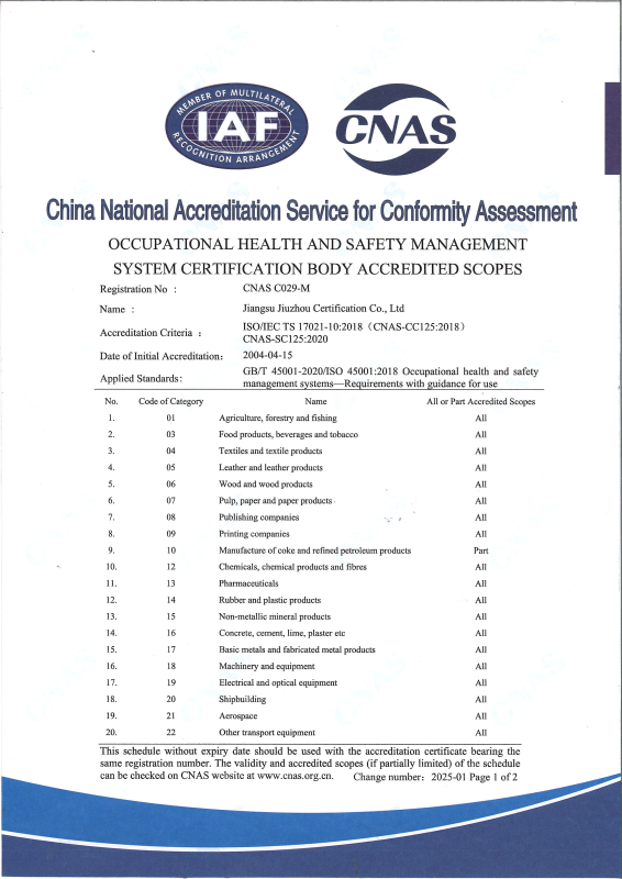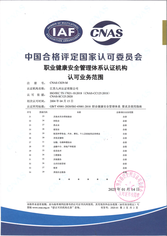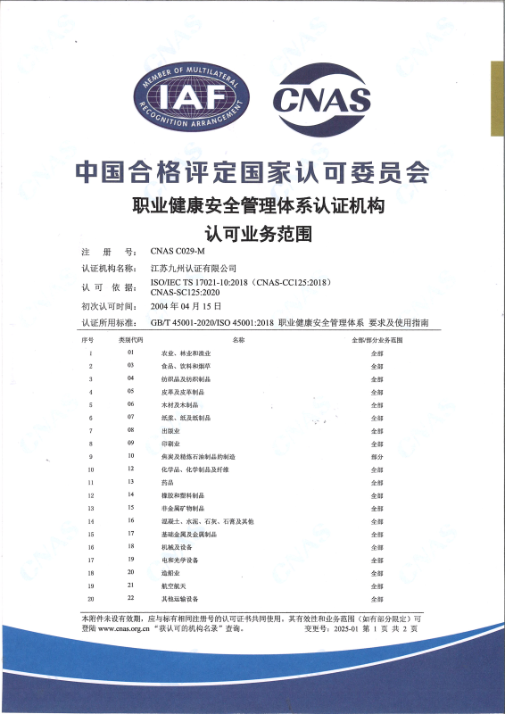 • 職業(yè)健康安全管理體系認可業(yè)務范圍-中文2